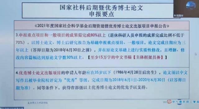 会议第六环节院长助理周建华副教授肯定了本次活动的价值,并就2022年国家社科基金项目、国家社科后期资助项目暨优秀博士学位论文项目、教育部社科基金项目、北京市社科基金项目、永利14m在线登录官网学术专著资助出版项目作了动员。她详细介绍了各项目的申请时点,并事无巨细地叮嘱各位老师各项目申报时的注意事项。