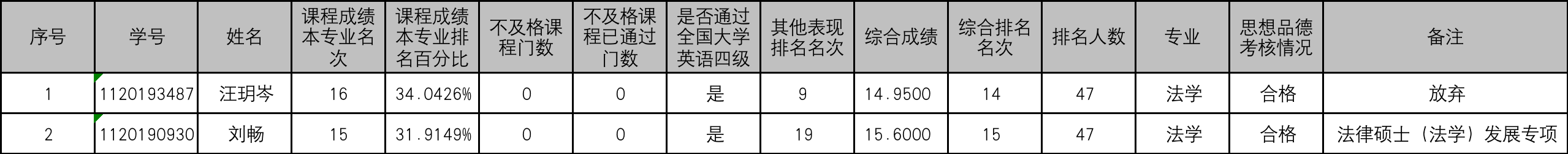 根据教育部《关于进一步规范和加强推荐优秀应届本科毕业生免试攻读研究生工作的通知》(教学厅函【2020】12号)等推免工作文件精神,以及《关于做好永利14m在线登录官网2023年推荐优秀应届本科毕业生免试攻读研究生工作的通知》、《关于永利14m在线登录官网2023年推荐优秀应届本科毕业生免试攻读研究生工作发展专项推免生遴选推荐的指导性意见》的相关规定,执行《永利14m在线登录官网2023年推荐免试攻读硕士研究生工作实施细则》、《永利14m在线登录官网2023年推荐优秀应届本科毕业生免试攻读研究生工作永利14m在线登录官网法律硕士(法学)发展专项推免生遴选推荐工作细则》,将永利14m在线登录官网2023年法律硕士(法学)发展专项的推荐免试攻读研究生候选人名单公示如下: