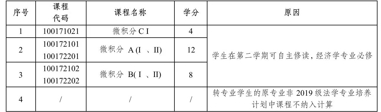三、法学专业课程认定和成绩计算细则