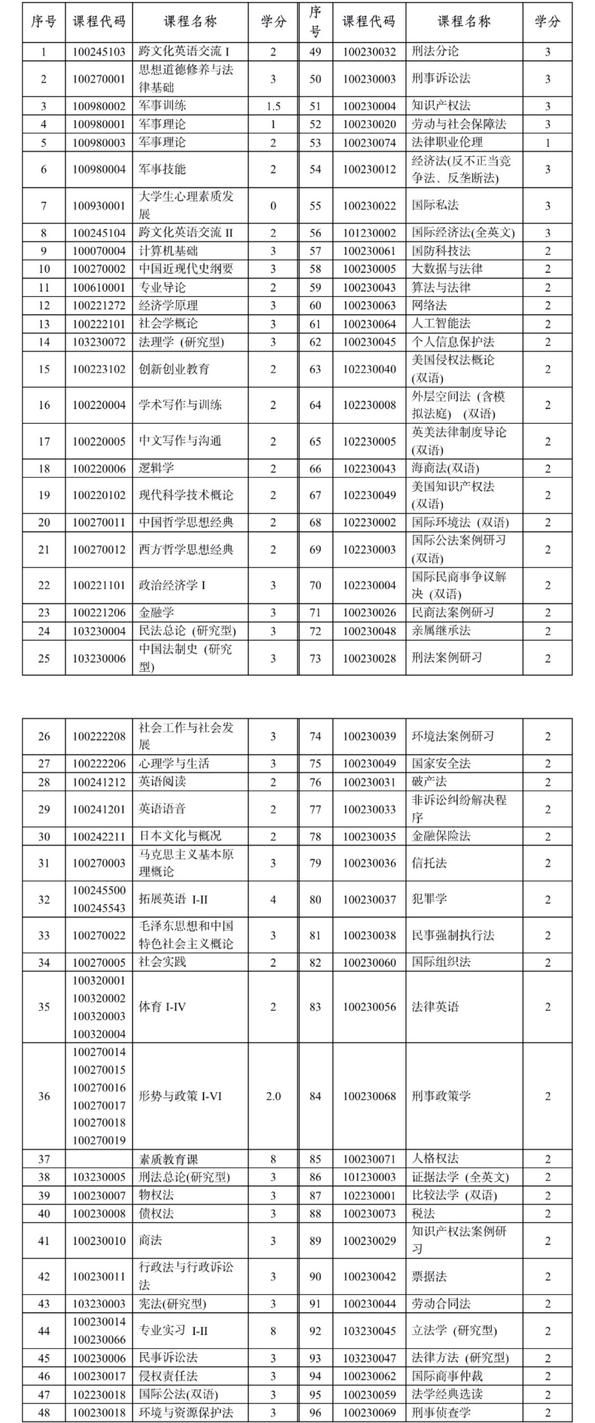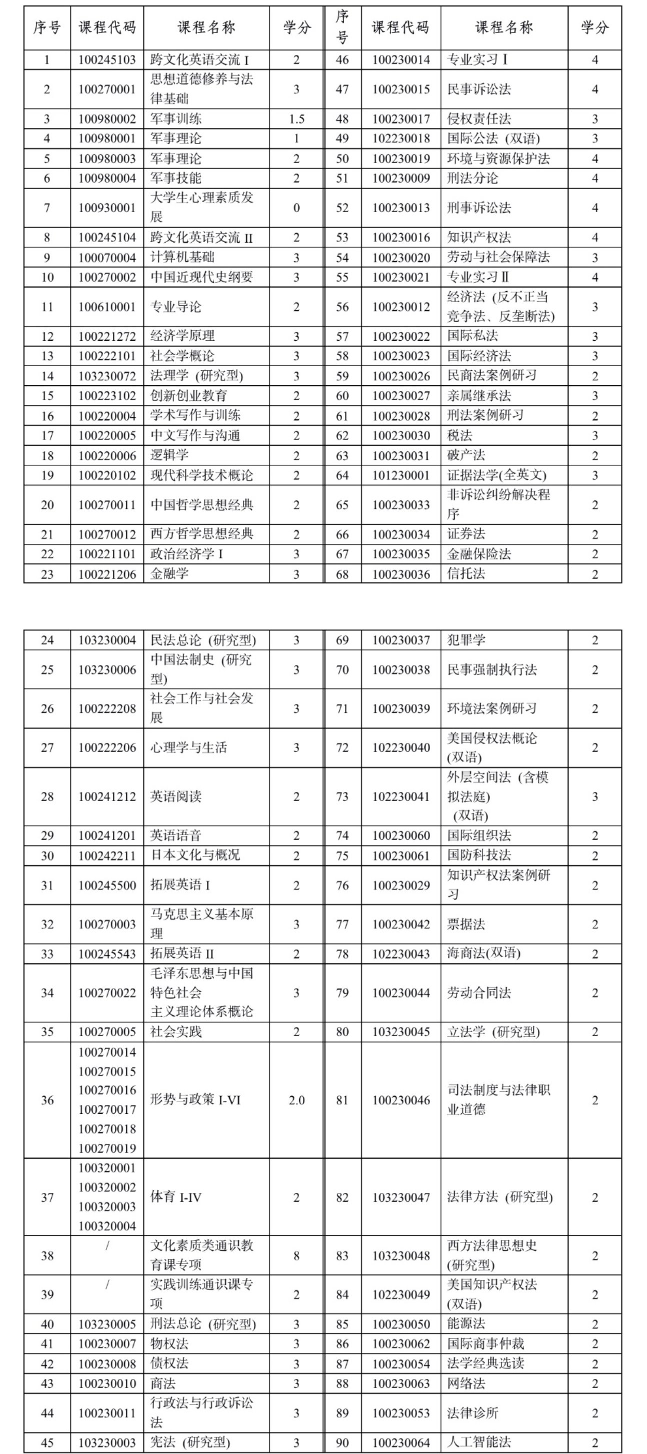 1、法学普通班参与计算的课程