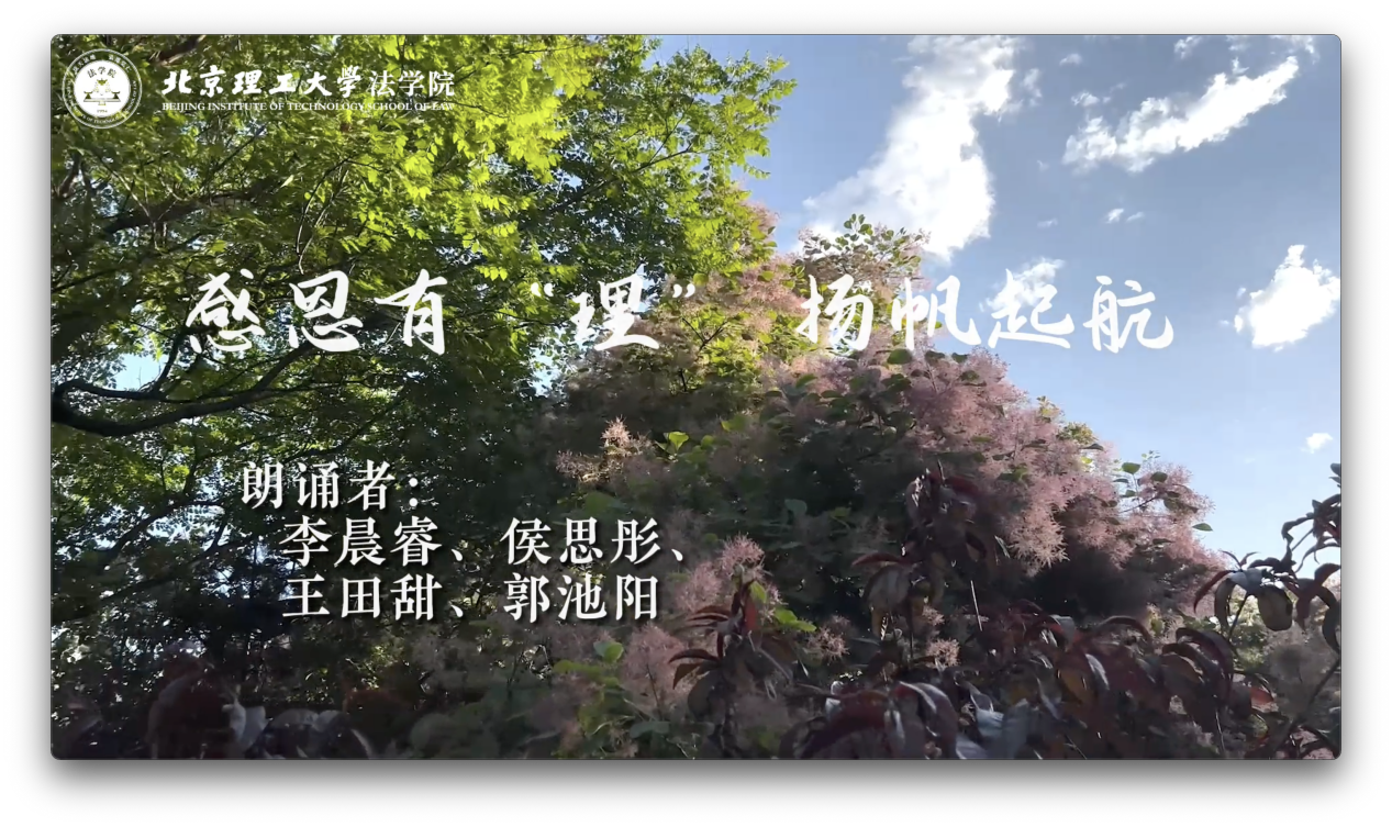 今年夏天,疫情虽然阻挡了毕业生返校的步伐,却无法阻挡同学间温情的传递。2022届毕业生在“法毓青春”祝福视频以及“感恩有理”朗诵视频中,回顾了求学北理工永利14m在线登录官网的美好时光,声情并茂地表达了他们对学校和学院的热爱、对老师们的感激和对同学们的不舍。