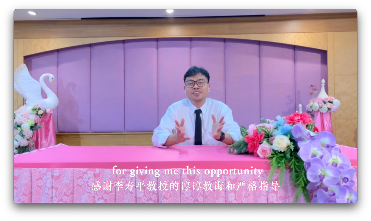 学院自建院以来广泛开展国际交流与合作,培养了一批又一批国际化人才。优秀外国留学生毕业生代表Dr.Su Wei分享了自己从普通学生到联合国和平利用外层空间委员会会议泰国代表的经历,感谢了李寿平教授的谆谆教诲、严格指导以及中国同学们的热情、友爱。