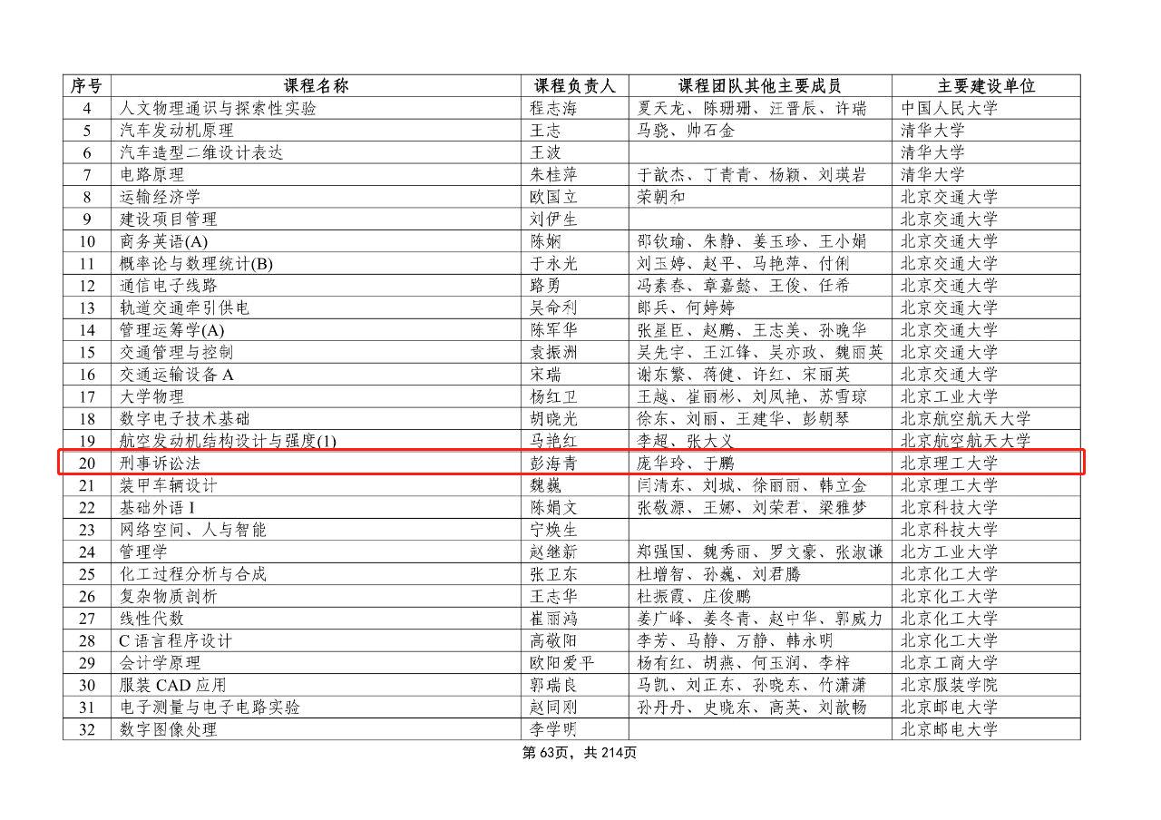 近日,教育部公布了第二批国家级一流课程名单,我院彭海青教授、庞华玲副教授、于鹏副教授共同打造的《刑事诉讼法》线上线下混合式课程获评教育部第二批国家级一流本科课程。