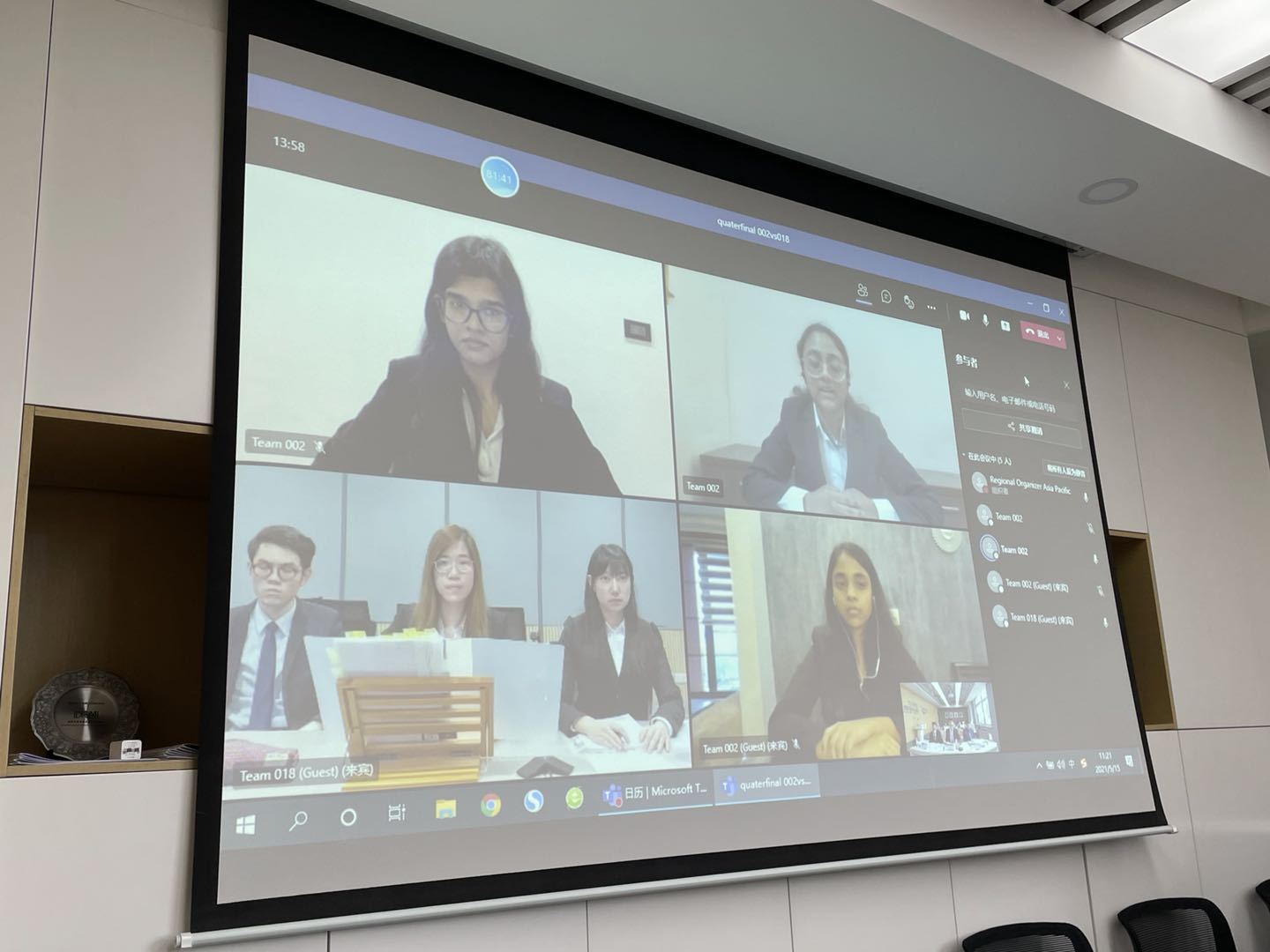 亚太地区赛分为书状评分和口头赛两个阶段。其中书状环节邀请了来自国内外国际空间法、国际法领域的多位知名专家学者对竞赛书状进行评分。受疫情影响,口头赛采取线上比赛的方式进行,由外交部条法司徐宇先生、中国空间法学会前秘书长张振军博士和永利14m在线登录官网空天政策与法律研究院院长王国语副教授担任法官。比赛过程严谨公正,法官具有深厚的空间法理论知识和实践经验,受到参赛队伍的一致好评。