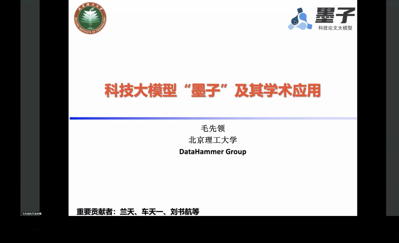 毛先领副教授在分享中提到,以ChatGPT为代表的人工智能工具的横空出世,再次加速了文献整理从搜索时代迈向大模型时代。他分别从检索、推荐、单文档摘要、多文档摘要、知识库构建、分类、科学证据挖掘、Covid热点、问答与对话、发现科学规律、生成等多方面介绍了“墨子”科技大模型的强大功能,希望通过对“墨子”模型的不断优化,可以在科技论文领域多模态应用、科技论文领域推荐应用、科技论文续写应用三方面发挥重要作用,从而彻底、全方位解决数据碎片化、分析力度粗、知识获取难的难题。他提到,高校教师在科研过程中,面对重要且海量的数据,可以从信息检索以及数据挖掘两方面高效组织科技数据,从而使科学研究从以单篇文章为基本粒度到深入文章内部构件联系,并就“墨子”大模型协助教师找资料、写综述、找观点、实验设计、写论文、填表格等方面所发挥作用进行了讲解和现场演示。