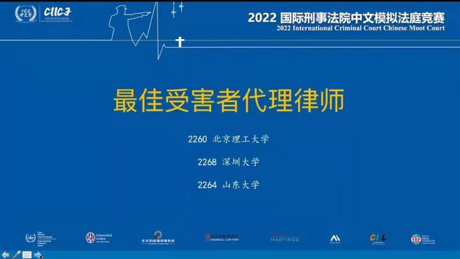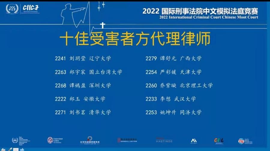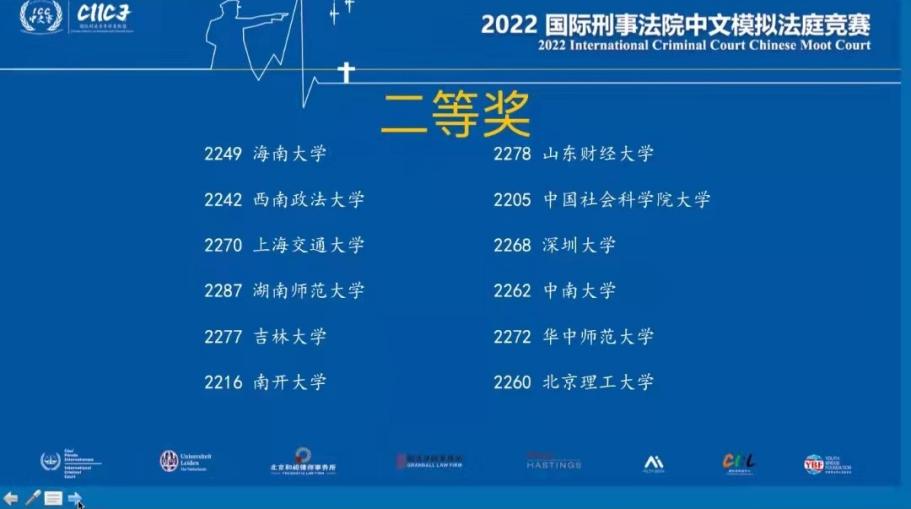 2021年11月30日至2022年4月17日,为期四个月的“2022国际刑事法院中文模拟法庭竞赛”圆满落下帷幕。本次模拟法庭竞赛共有88支高校代表队参赛,51支代表队晋级正赛。永利14m在线登录官网代表队一路过关斩将,晋级正赛,最终荣获团体二等奖、最佳受害者代理律师奖,庭辩人乔紫璇荣获十佳受害者方代理律师。