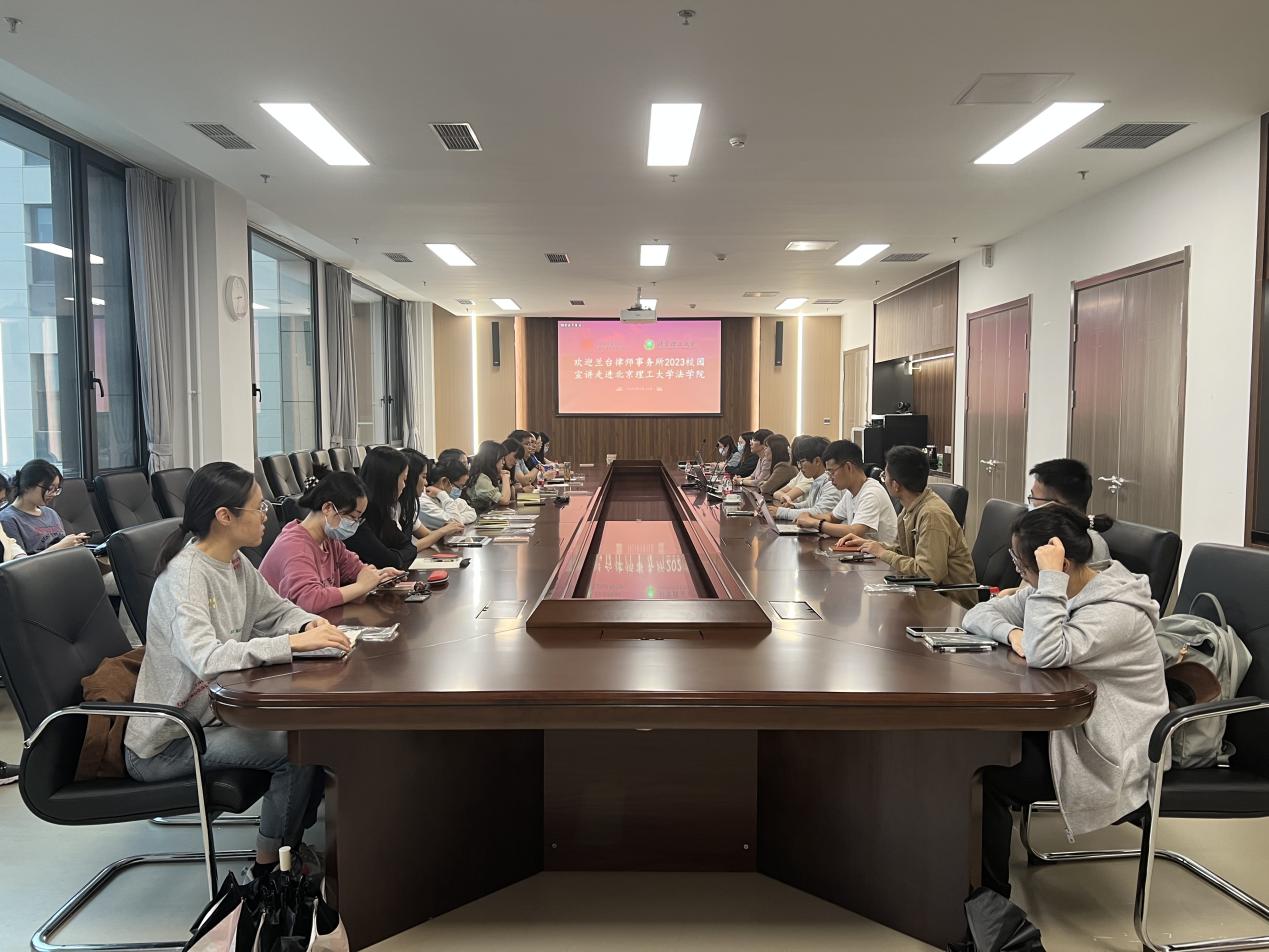 随后,王丽对北京市兰台律师事务所的律所概况、律所荣誉、执业团队等方面展开介绍,并就为什么选择兰台、兰台保障机制等与同学们密切联系的问题进行了分析。她提到,兰台律所实行律师职业层级培养制度,将根据入职人员的执业状况及前景分级授薪。王丽强调,律所注重文化建设,专门设有论坛供青年律师进行讨论。司艳溪作为年轻律师代表,向同学们分析了毕业之后为什么选择做律师、如何选择律所等问题。