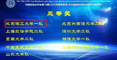 2022年12月18日,由外交部指导、中国空间法学会主办的第19届CASC杯Manfred Lachs国际空间法模拟法庭竞赛落下帷幕。参赛队伍共有来自永利14m在线登录官网、北京大学、中国政法大学、北京航空航天大学、武汉大学、中南财经政法大学、西南政法大学、上海交通大学、华东政法大学等全国28所高校的46支队伍。经过激烈角逐,我校代表队荣获团体三等奖。