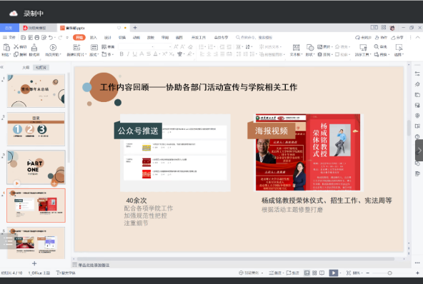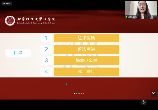 法律援助中心主任张倩从法律援助、普法宣传、综合办公室、线上宣传四个方面对上学期开展的法援工作进行总结汇报,并对法援全体成员的辛苦付出表示感谢。