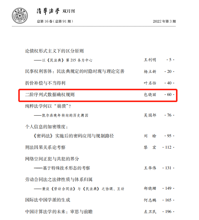 二阶序列式数据确权规则. 清华法学, 2022(03)