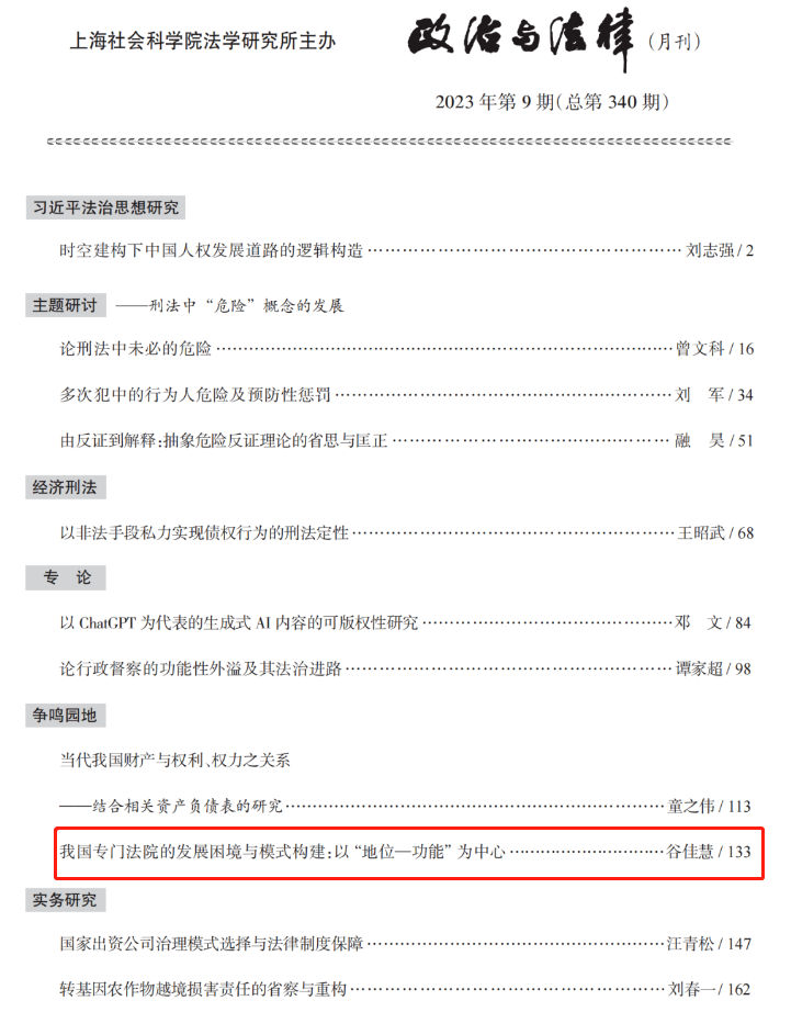 北理工永利14m在线登录官网博士后谷佳慧在《政治与法律》发表论文