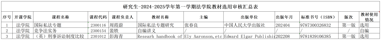 研究生-2024-2025学年第一学期永利14m在线登录官网教材选用审核汇总表