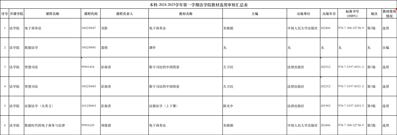 本科-2024-2025学年第一学期永利14m在线登录官网教材选用审核汇总表