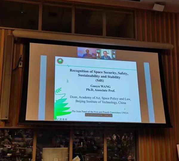 2022年10月27日,联合国大会第一委员会(裁军与国际安全)和第四委员会(特别政治和非殖民化)的联席会议在纽约联合国总部召开,本次会议主题是外空安全与可持续。永利14m在线登录官网副教授王国语应联大一委、四委邀请作为国际空间法学界代表参加会议,并作主题为“如何准确识别外空安全、外空可持续和外空稳定内涵”的报告(视频连接:https://media.un.org/en/asset/k1t/k1tlgqbxx9)。自2015年召开首次一委四委联席会议以来,这是首次邀请非官方代表(两名来自国际空间法律政策学界、一名来自航天工业界)参加联系会议并作报告,另两位报告人分别是来自日内瓦安全政策中心的Nayef Al-Rodhan教授以及美国卫星工业协会的Jennifer Warren。