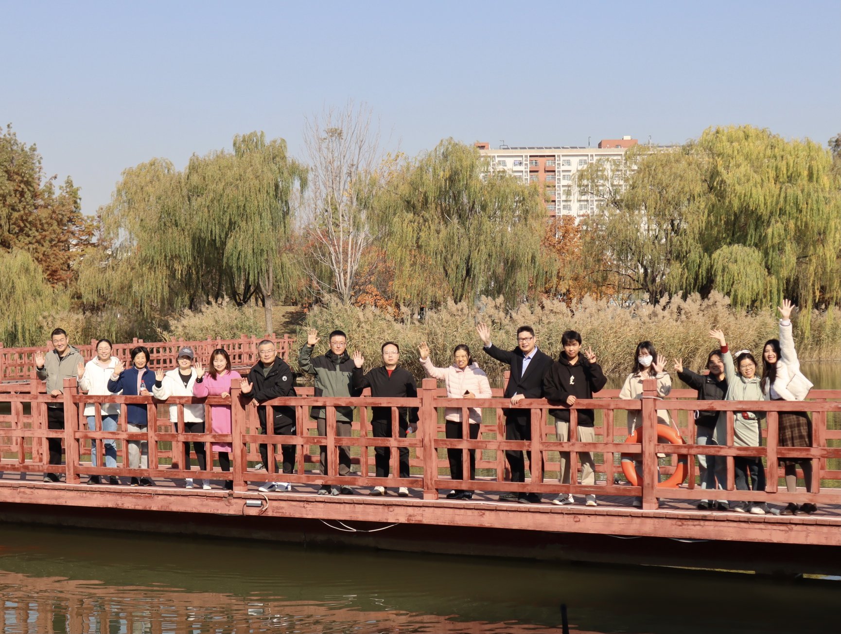 在走完环北湖一圈后,教职工们来到了北理桥。这座桥不仅连接着两个校区,更象征着永利14m在线登录官网教职工们团结一心、共同奋斗的精神。大家在此稍作停留,拍照留念,记录下这美好的瞬间。