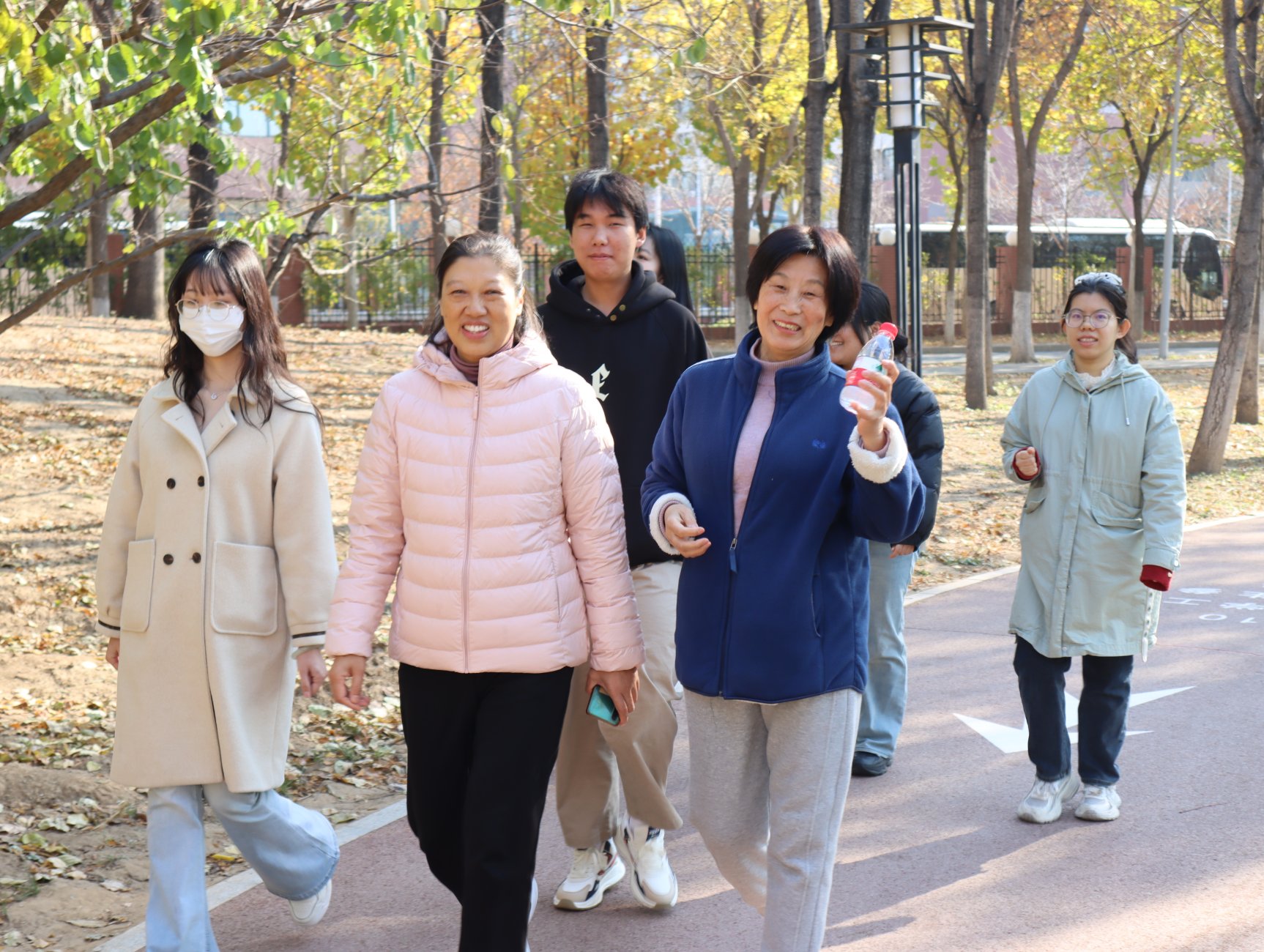 本次秋季健步走活动精心规划活动路线,将自然风光与人文情怀完美融合。教职工们首先在集合点集合并合影留念,随后踏上了“湖畔秋色健步行”的征程。他们沿着环北湖一圈的路线行进,沿途欣赏着秋日湖畔的美景,感受着清新的空气和明媚的阳光。老师们边走边聊,从教学心得聊到生活趣事,欢声笑语不断。
