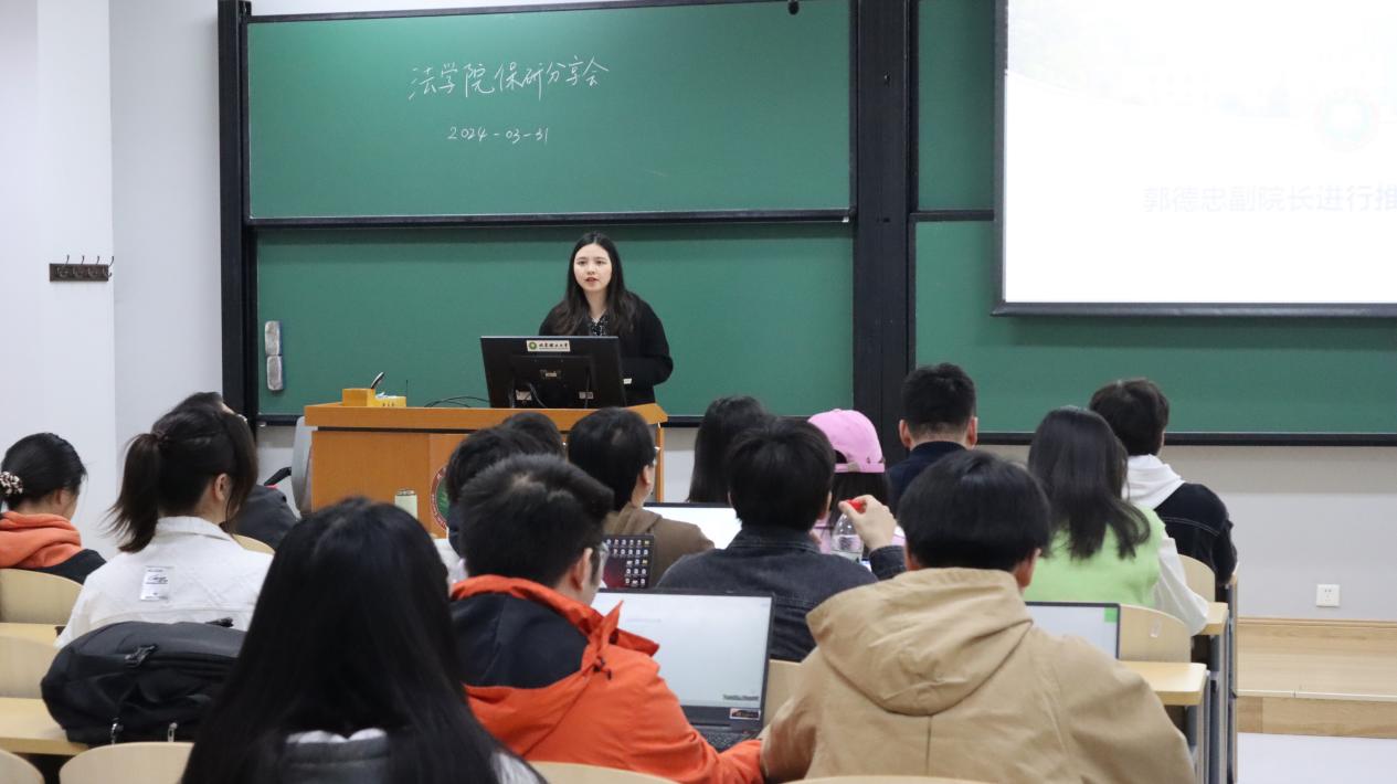 分享会由郭德忠副院长、本科教学干事杨佳美老师、明德书院辅导员刘敏老师进行往年推免政策宣讲与答疑,由三名保研成功的优秀同学:杜宇航(保研至中国政法大学永利14m在线登录官网)、巩镇(保研至中共中央党校)、张泽洲(保研至永利14m在线登录官网)向大家介绍保研路上的相关经验,永利14m在线登录官网21级、22级本科生参加了此次活动。