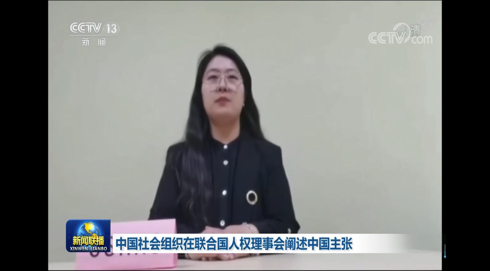 (图为新闻联播报道我校教师参加联合国人权理事会视频发言截图)