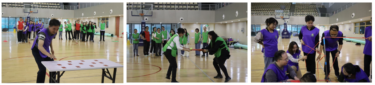 在热身和破冰活动结束以后,学院教职工们分成了两组,以团队合作的形式共同完成了剩下的环节。