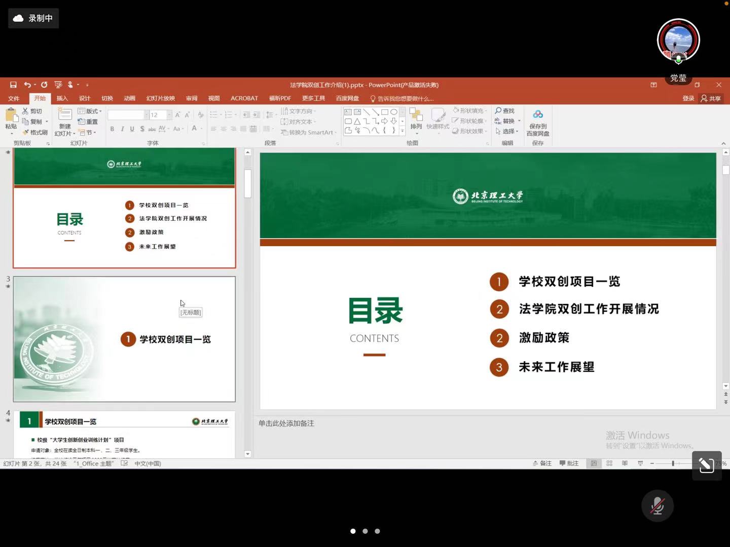 之后,学院辅导员党莹结合学校政策和学院以往申报情况,从学校双创项目介绍、学院双创工作开展情况、激励政策等方面对几类重要比赛进行了详细介绍,同时,对未来工作进行了展望:各类学生竞赛有利于加强书院制管理模式下的教师与学生的沟通,进一步激发指导教师、学生学术热情,学院教师可充分结合学校的优势特色,发挥法学专业在申报政策性项目方面的优势,指导学生积极申报,取得更多优质成果。