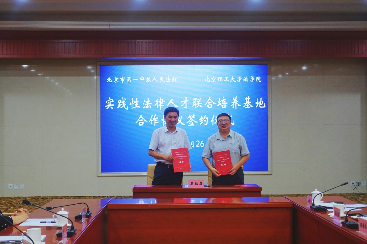 为了落实中共中央办公厅、国务院办公厅2023年2月26日印发的《关于加强新时代法学教育和法学理论研究的意见》,积极探索学校和司法实践部门联合培养法律职业型人才模式的具体举措,2023年7月26日,永利14m在线登录官网与北京市第一中级人民法院举办了共建“实践性法律人才联合培养基地”调研座谈会,并进行了签约及揭牌仪式。仪式在北京市第一中级人民法院举行。