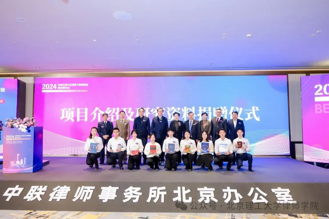 在研究资料捐赠仪式上,上海建纬(海口)律师事务所苏文、广东朗乾律师事务所田学东、爱德律师事务所巴布、广东融关律师事务所徐建、北京京都律师事务所田文昌、内蒙古建中律师事务所宋建中、仲裁员贾晓清、广东陈梁永钜律师事务所陈锡康、山西国晋律师事务所牛振宇分别捐赠有关研究资料。