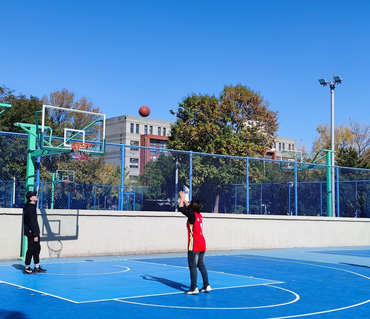到了小组赛中场环节,女生球员王欣瑶凭借精湛的投篮技术,为篮球比赛赢得了宝贵的三分!