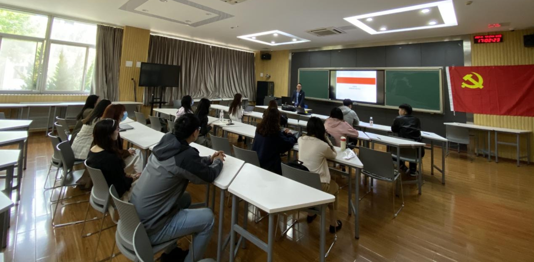 本次活动共分为三项流程,首先由民商法所党支部书记付俊伟同志讲授党课。其次为研究生第四党支部书记任澜涛同志分享阅读党史书籍心得。最后为全体参会党员同志重温入党誓词。
