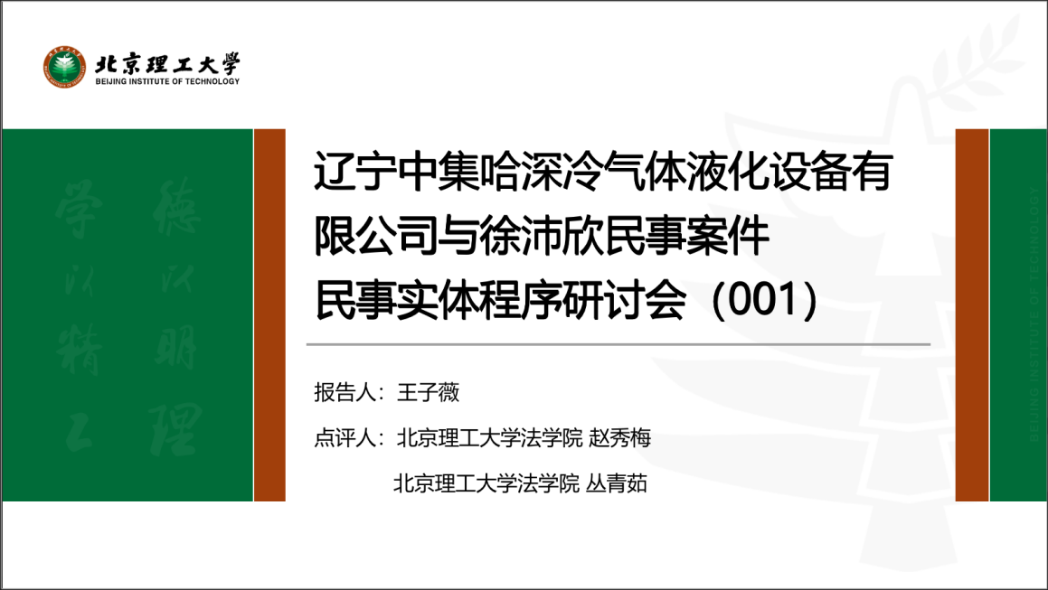 2021年4月28日晚,永利14m在线登录官网召开了第一次民事实体程序研讨会。本次研讨会探讨的案例为“辽宁中集哈深冷气体液化设备有限公司、徐沛欣再审”一案。民商法所所长赵秀梅老师、诉讼法所所长于鹏老师参加会议,另外民商法所李艳秋老师、杨华权老师、姜雪莲老师、诉讼法所的丛青茹老师也参加本次研讨会。本次会议的报告人为永利14m在线登录官网民商法学硕士王子薇同学,点评老师为永利14m在线登录官网赵秀梅老师和丛青茹老师。会议采用线上方式进行,以便所有感兴趣的老师和同学都能够有所参与。