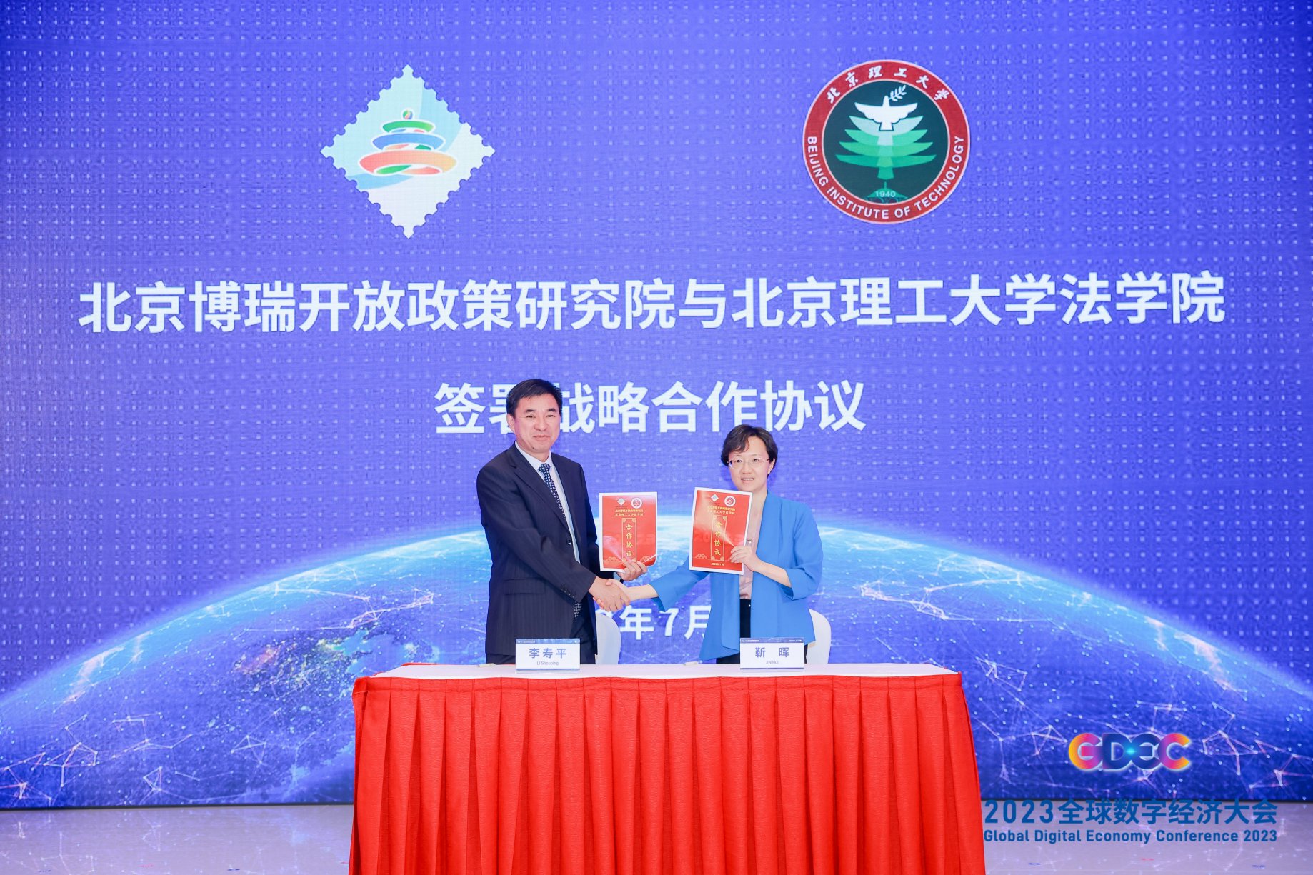 2023全球数字经济大会闭幕式于2023年7月7日下午在国家会议中心举行。永利14m在线登录官网与北京博锐开放政策研究院在闭幕式共同签署了合作共建协议,此后双方将就网络空间全球治理的研究和人才培养开展合作。