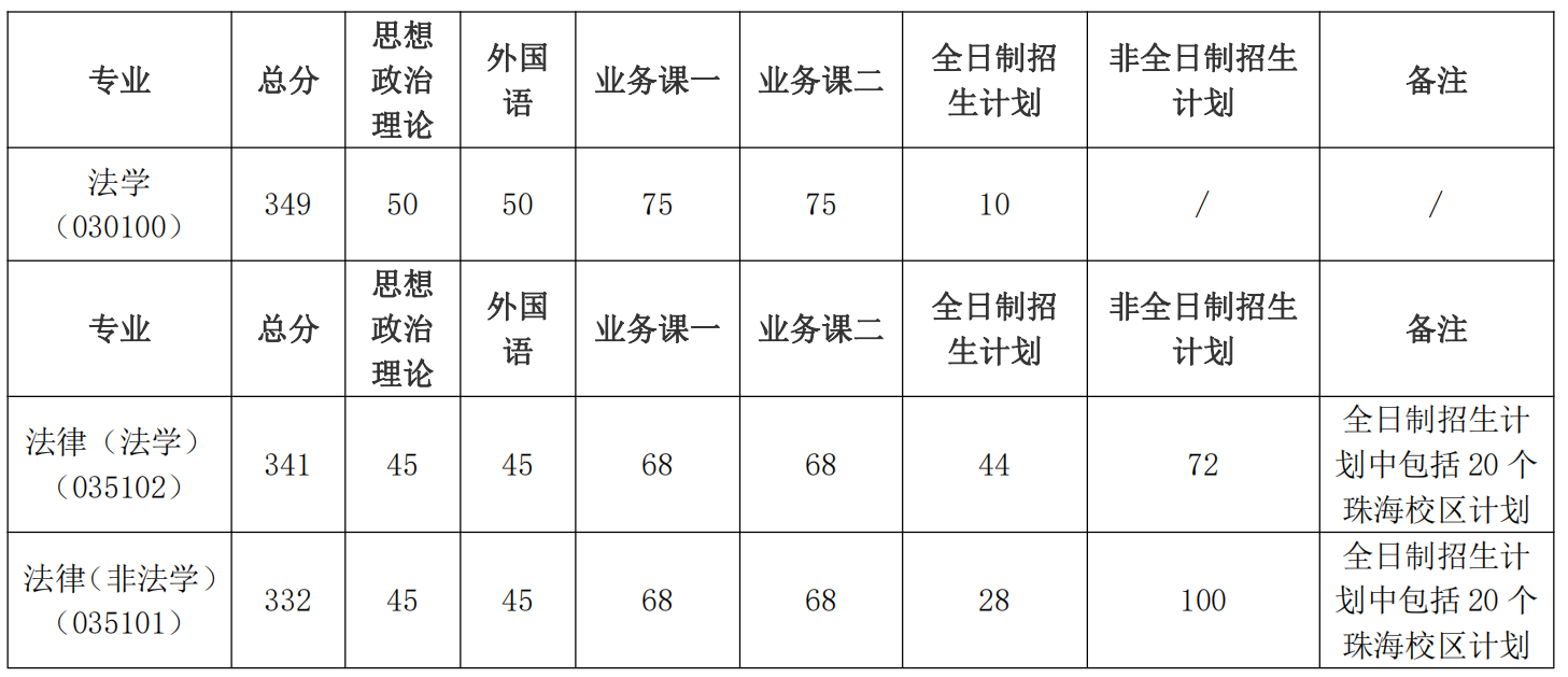 注:1.非全日制复试分数线与全日制相同。第一志愿上线人数17人,其中法律(法学)6人,法律(非法学)11人,全部参加复试。