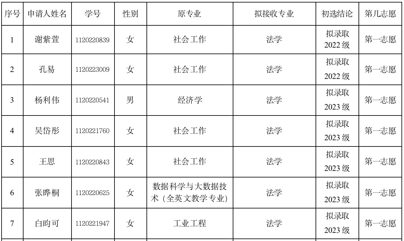 永利14m在线登录官网2023-2024学年第二学期转专业初选结果公示