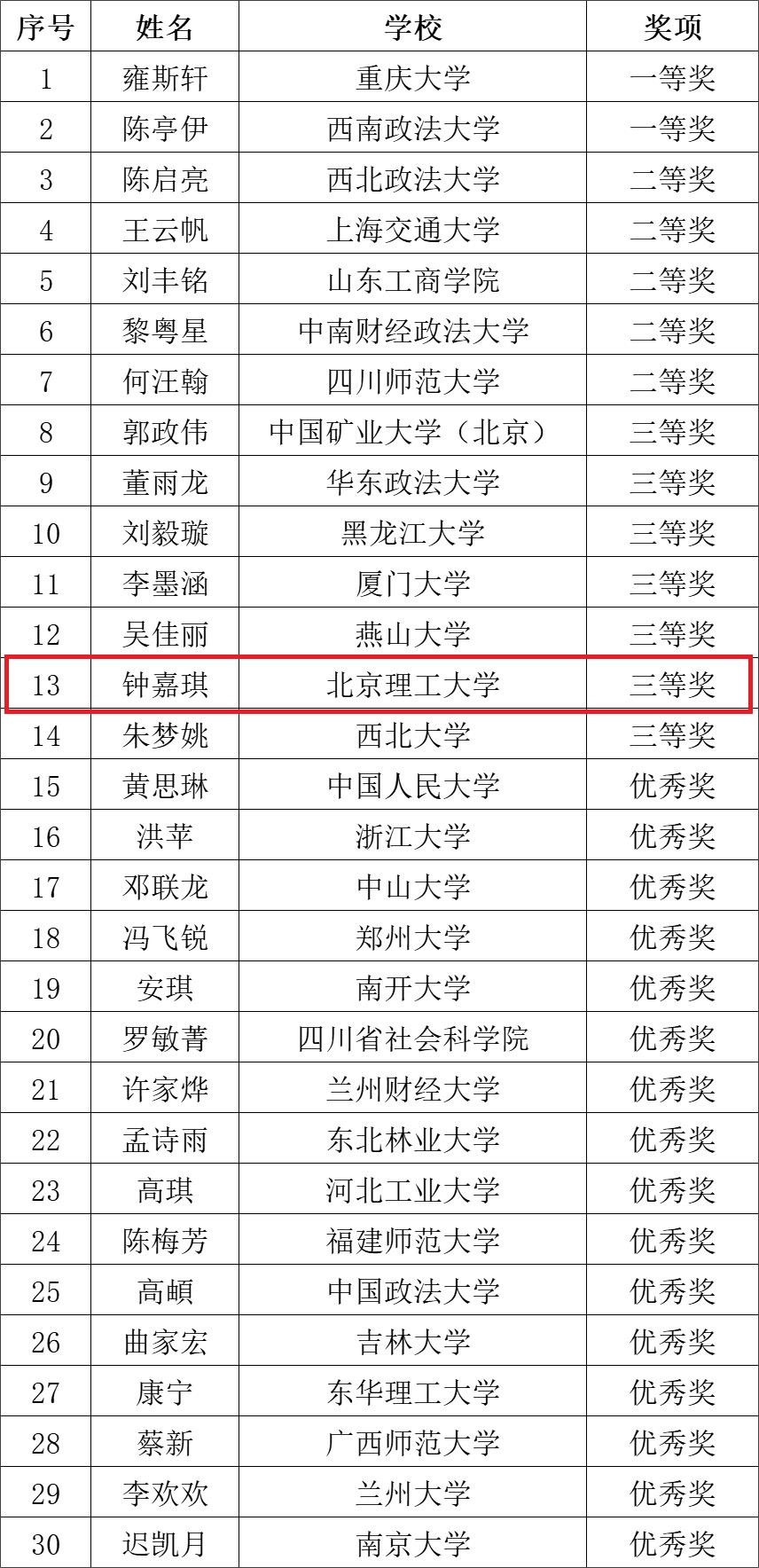 北理工永利14m在线登录官网钟嘉琪同学荣获第八届(2025)法律专业学位研究生法律文书写作大赛三等奖